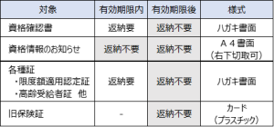 在籍中に所有していた有効期間内の「資格確認書」等の各種証は、返納が必要です。